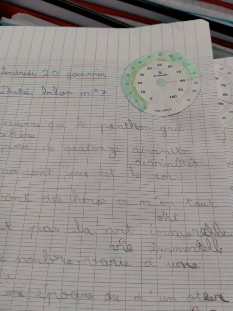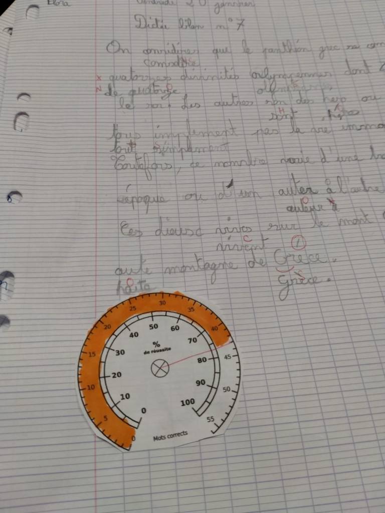 Au début, je comptais et validais leurs réussites en faisant des calculs savants qui me prenaient un temps fou… Mais j’aimais bien l’idée du pourcentage, assez parlant pour des élèves de cycle 3. Tant pis, c’était la galère tous les vendredis midis lors de la correction, mais je persistais !