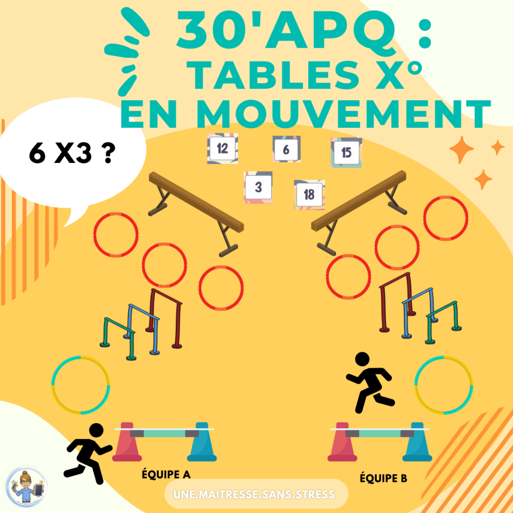 Pour ce jeu, faites plusieurs équipes, énoncez une opération (ex: 6×3 = ?), le premier membre de chaque équipe part le plus rapidement possible réaliser le parcours (cerceaux, haies, sauts…) pour parvenir en premier sur l’étiquette de la bonne réponse !