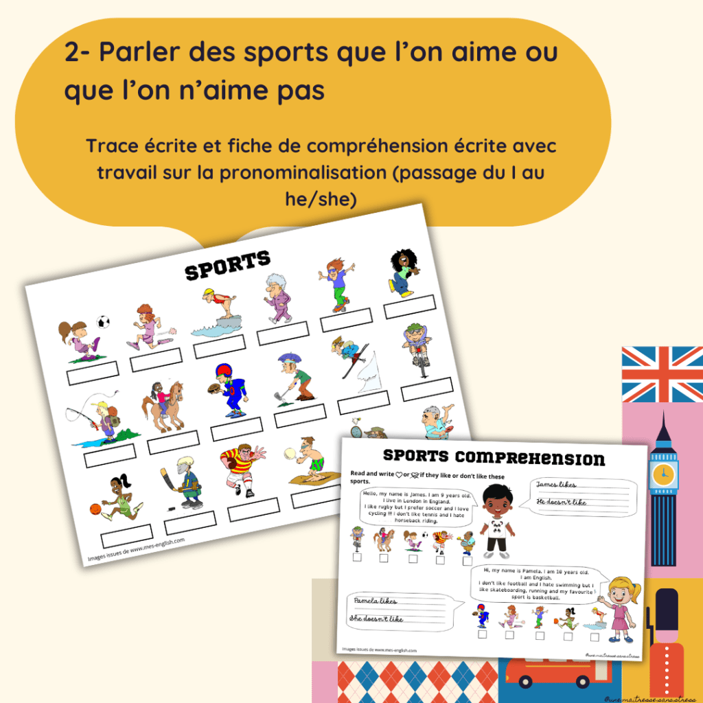 Voici mes documents pour une sĂ©quence complĂšte d’anglais sur le thĂšme des sports…