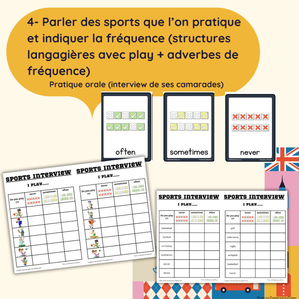 Fiches de pratique orale : interview de ses camarades sur la frĂ©quence de pratique de certains sports (2 fiches avec niveaux de difficultĂ©s diffĂ©renciĂ©es)đ